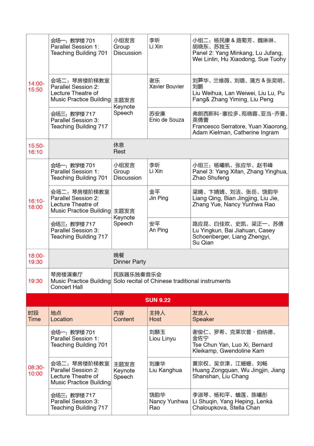 “碰撞与交汇——全球视野下的中国音乐当代研究暨第22届‘磬’国际学术研讨会”议程表、研讨会内容