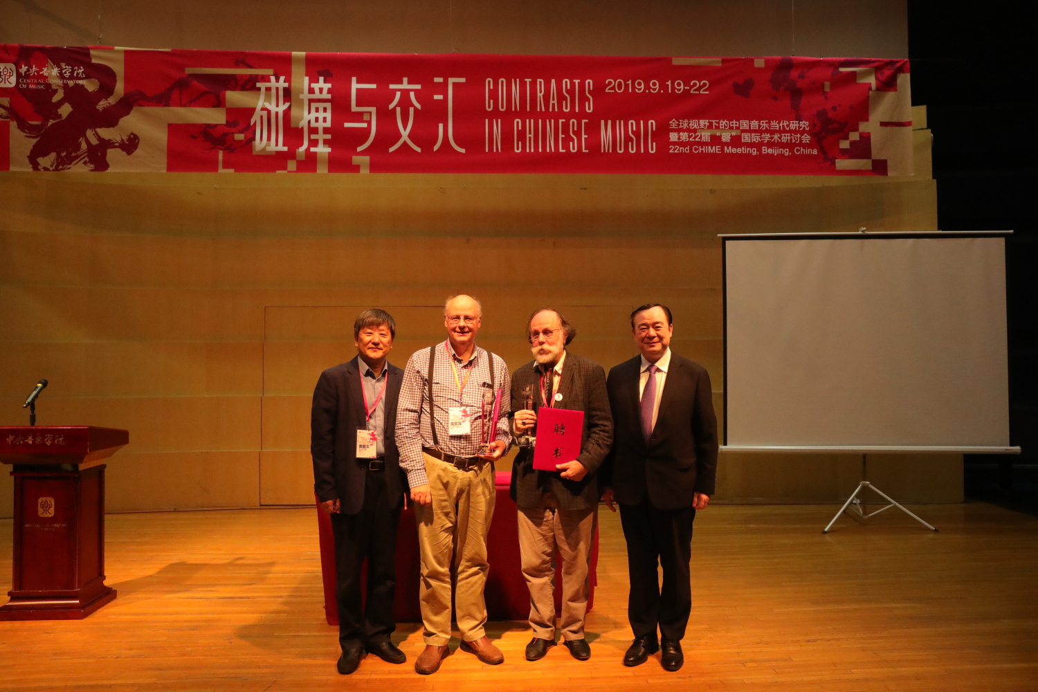 鉴于此次会议的合作方——“中国音乐研究欧洲基金会”在增进中外跨文化理解、推动中外音乐文化交流、促进中国音乐国际传播方面作出的重要贡献,KY开元集团官网入口决定聘请该基金会五位成员——该基金会主任高文厚先生(Frank Kouwenhoven)、英国伦敦大学钟思第教授(Stephen Jones)、法国巴黎索邦大学皮卡尔教授(Francois Picard)、美国加州大学洛杉矶分校李海伦教授(Helen Rees)、德国海德堡大学梅嘉乐教授(Barbara Mittler)为教育部人文社会科学重点研究基地KY开元集团官网入口音乐学研究所学术委员会外籍委员。随后,俞峰院长为当天到会的两位外籍学术委员高文厚、皮卡尔颁发了聘书。
