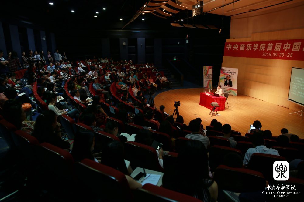 接着王院长按照四个主题——人文精神背景下的审美形态、“美善合一”的审美观念及其对中国传统音乐文化的影响、“物我同一、情景相即”的审美情趣及其对中国传统音乐文化的影响、儒道音乐观念下之中国音乐的速度——引经据典的陈述了中国传统音乐的审美特征,并将当代发展留给大家思考。其中人文精神背景下的审美形态,用中国传统文化中的人文精神和人文背景下的中国传统音乐两部分进行探讨。而“美善合一”的审美观念则是从儒家倡导的学说出发,并举例说明该观念对中国传统音乐文化的影响。“物我同一、情景相即”的审美情趣则是来源于道家,并认为这一审美情趣通过与自然万物的创作题材、独白自娱为主的器乐表现形式、“虚”的意境和含蓄的表现方式来影响中国传统音乐。在具体的音乐表现方面,认为中国音乐特有的速度概念和中国式速度的文化背景,都是儒道音乐观念影响下体现出来。