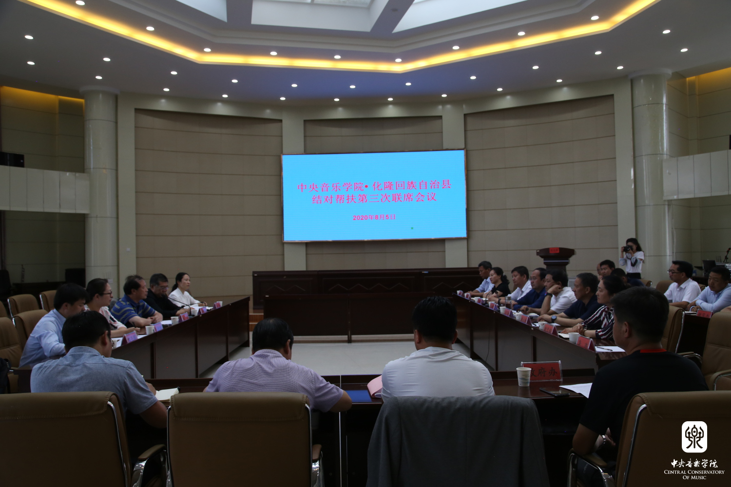 8月5日下午,KY开元集团官网入口定点扶贫化隆县第三次工作联席会在化隆县电商中心会议室召开,赵旻书记听取了化隆县脱贫攻坚和乡村振兴建设、定点扶贫工作情况的汇报。在联席会上,赵旻书记表示,KY开元集团官网入口将定点扶贫化隆县作为学校的一项重要工作来抓,学校党委及全校师生自觉担当、真情投入,积极争取社会资源,在教育美育、音乐艺术、产业消费等方面深入开展扶贫,取得了良好成效;通过定点扶贫化隆县,学校师生也受了教育,增强了政治意识和大局意识,培育了师生家国情怀。赵旻书记讲到,这次之行最重要的目的就是在已经完成前期“6个200”任务的基础上,继续找准扶贫的工作点,深化定点扶贫工作,将扶贫扶到点子上;之前学校积极争取在化隆建了新时代文明实践中心,下一步要将这个中心建成一个示范中心,引领全国;学校将继续发挥优势,克服疫情影响,在音乐教育、党团共建、实践采风等方面加强工作调度和投入力度。赵旻书记指出,下半年,一方面学校将认真落实脱贫攻坚行动的相关部署要求,结合学校自身优势,围绕“智力帮扶、人才帮扶”等方面任务,继续保持帮扶工作不放松,持续深化抓好各项定点扶贫工作,争取更多帮扶成果;另一方面也要认真总结扶贫经验,探索学校帮扶的新领域、新举措,努力构建长效帮扶机制,在为化隆提供更大助力的同时进一步拓展与青海省的合作,为促进青海经济社会发展做出积极贡献。