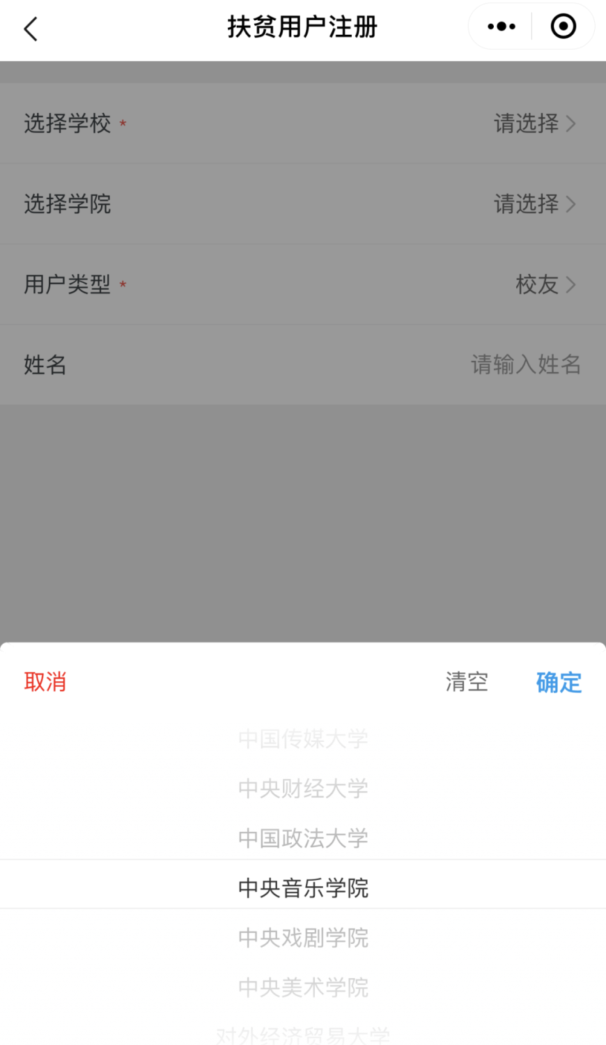 第四步:点击“我的”进入个人中心界面,点击“我的扶贫贡献度”,进入后点击“绑定学校(携手助力扶贫)”。