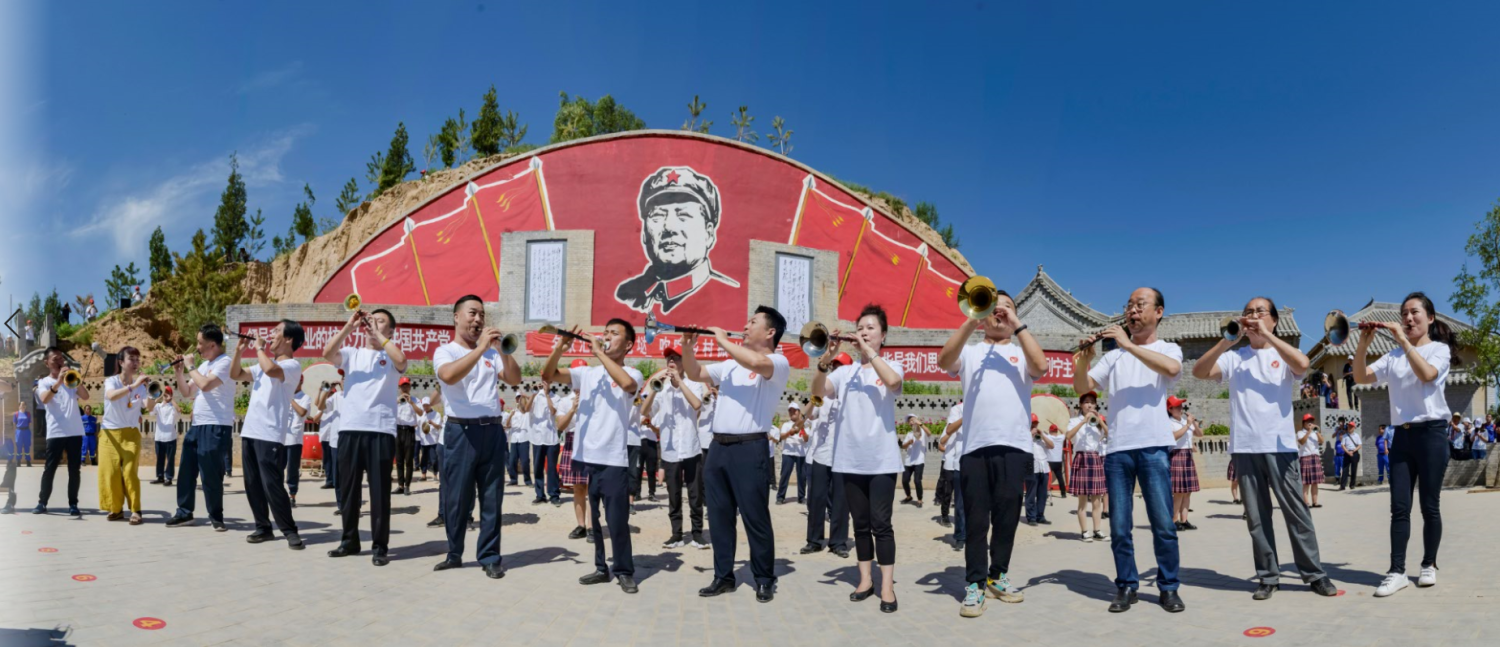 作为此次活动的重要环节和双实践的重要内容,与会专家一大早就深入到原国家级贫困县吕梁中阳县的神圪垯村,与当地的民间吹打艺人现场切磋交流,专业演奏家、教育家和吕梁艺校学生以及当地民间艺人共同演绎唢呐情缘,上百把唢呐齐奏黄土高坡的山梁之上,唢呐声声响彻黄土高原的千沟万壑。当天下午,艺术家们和唢呐学子顶着烈日在村子里为乡亲们奉献了一场唢呐盛宴。随后,在当地领导的带领下,参观了神疙垯村村史纪念馆,讲述贫困山村脱贫摘帽的故事,也为在场的专家和教师们上了一堂生动的主题党课。