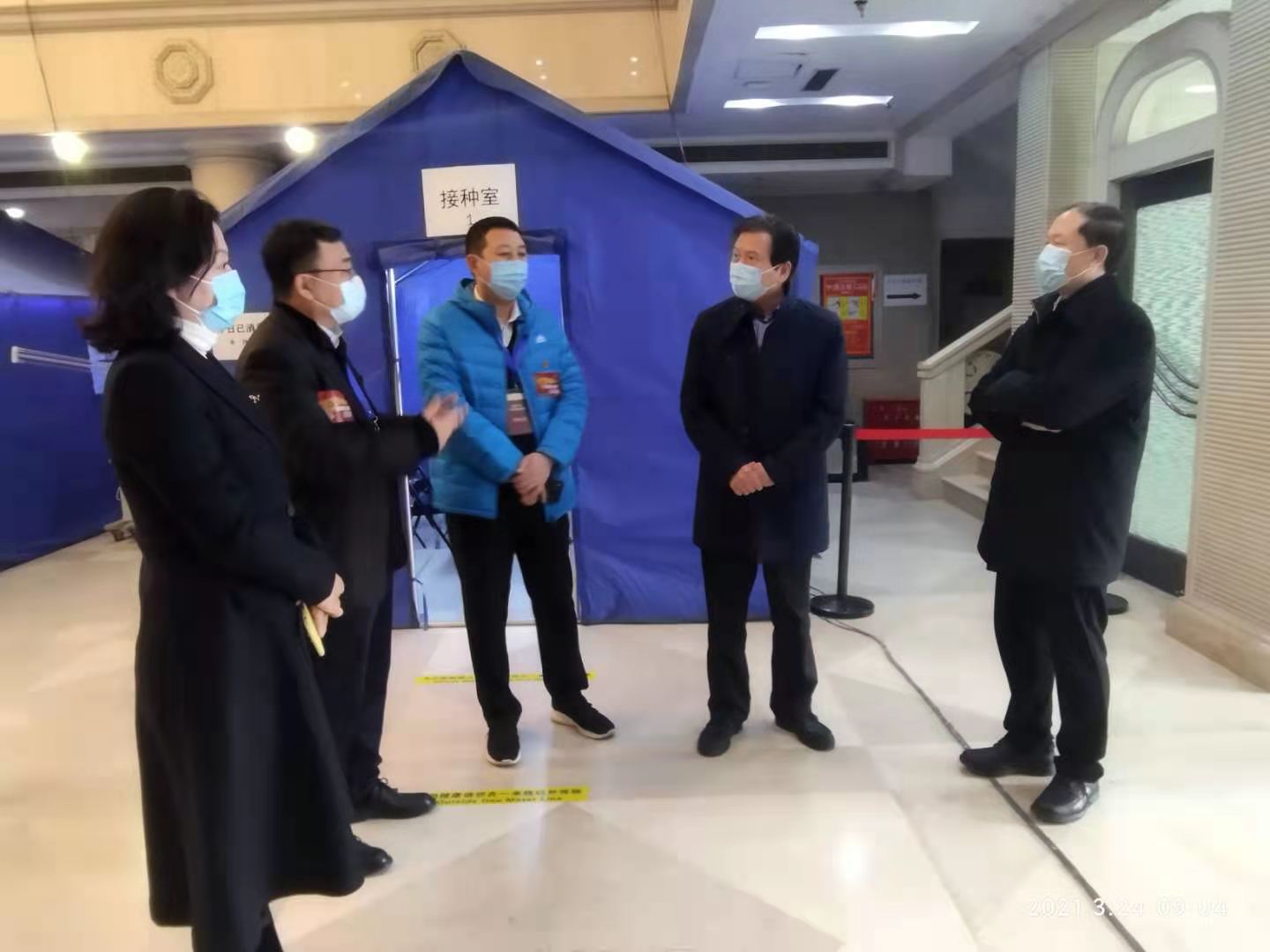 2021年3月24日上午,北京市教委一级巡视员黄侃同志在市教委职业教育与成人教育处陈敬文调研员的陪同下,来KY开元督查师生新冠疫苗接种工作开展情况,现场查看了学校琴房楼友谊厅疫苗接种现场,对咨询、登记、接种、留观、应急处置等整个工作流程进行了检查,并听取了学校党委书记赵旻同志对KY开元疫苗接种推进工作的介绍。