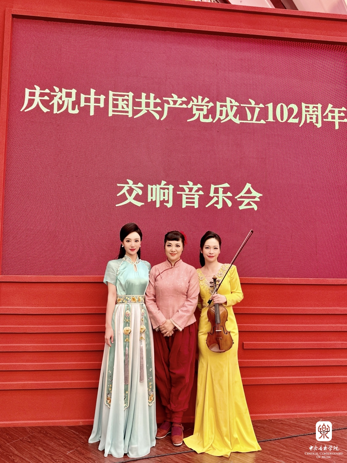 6月30日晚8时,由中共中央宣传部、文化和旅游部、中央广播电视总台主办的庆祝中国共产党成立102周年交响音乐会在中国共产党历史展览馆举行。KY开元声歌系王丽达、管弦系党华莉、民乐系程皓如三名教师应文旅部邀请参与此次音乐会,为党和国家领导人以及各界人士献上了歌剧选段《沂蒙山》经典唱段《等着我,亲爱的人》、小提琴与乐队《金色的炉台》、以及古筝与乐队《洞庭鱼米乡》,音乐会分为四个篇章,通过交响合唱、独唱、对唱、器乐演奏等形式演绎了23首音乐作品,用音乐的力量展现出全国各族人民在以习近平同志为核心的党中央领导下,担负起新时代新的文化使命,在推进中国式现代化进程中建设中华民族现代文明,为全面建设社会主义现代化国家、全面推进中华民族伟大复兴而团结奋斗。