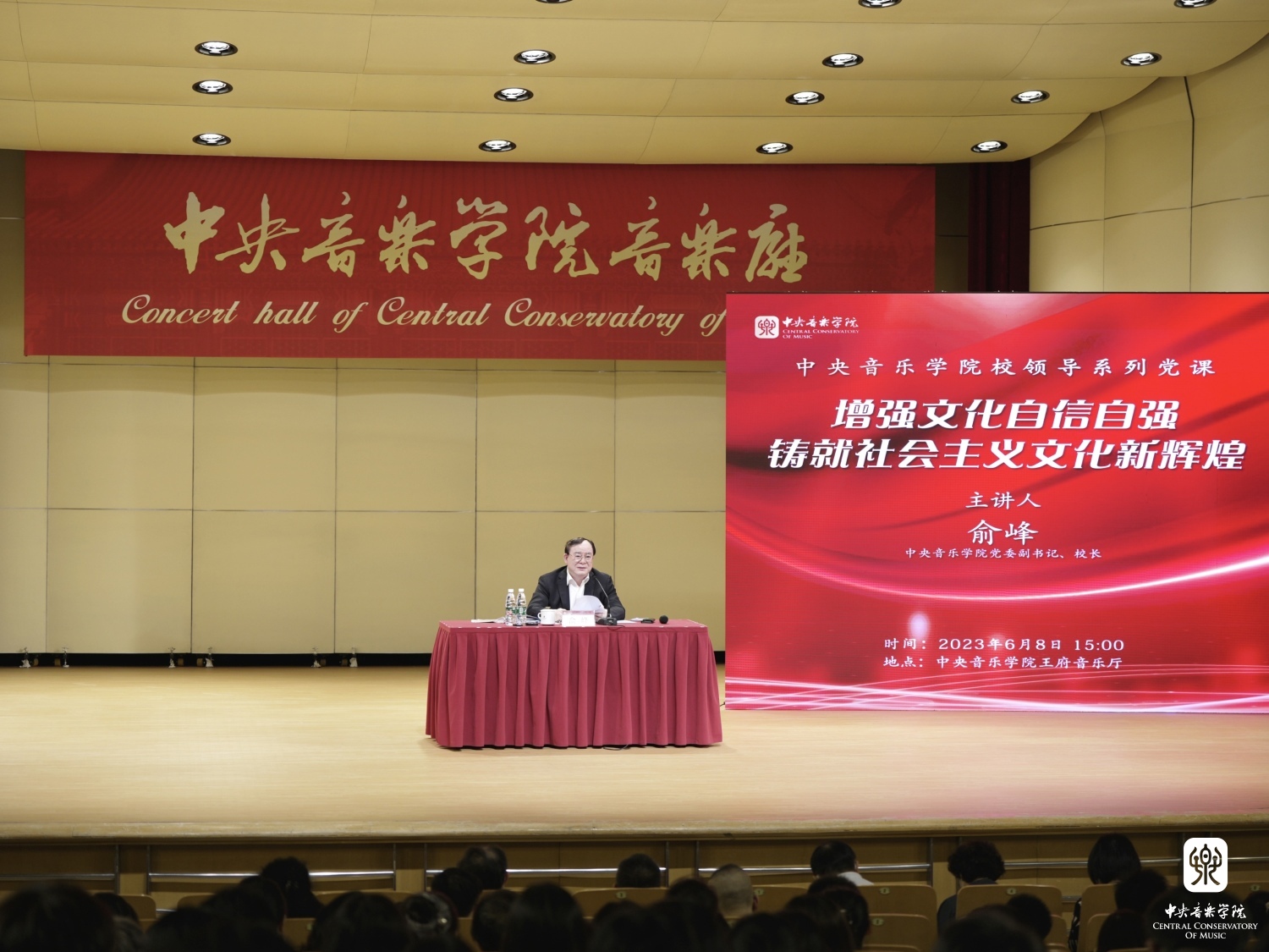 校长俞峰紧扣“增强文化自信自强 铸就社会主义文化新辉煌”主题,围绕深入学习党的二十大精神和习近平总书记关于文艺工作的重要论述,结合KY开元集团官网入口的“双一流”建设和实践,为全校党员师生们上了一堂深入人心的党课。