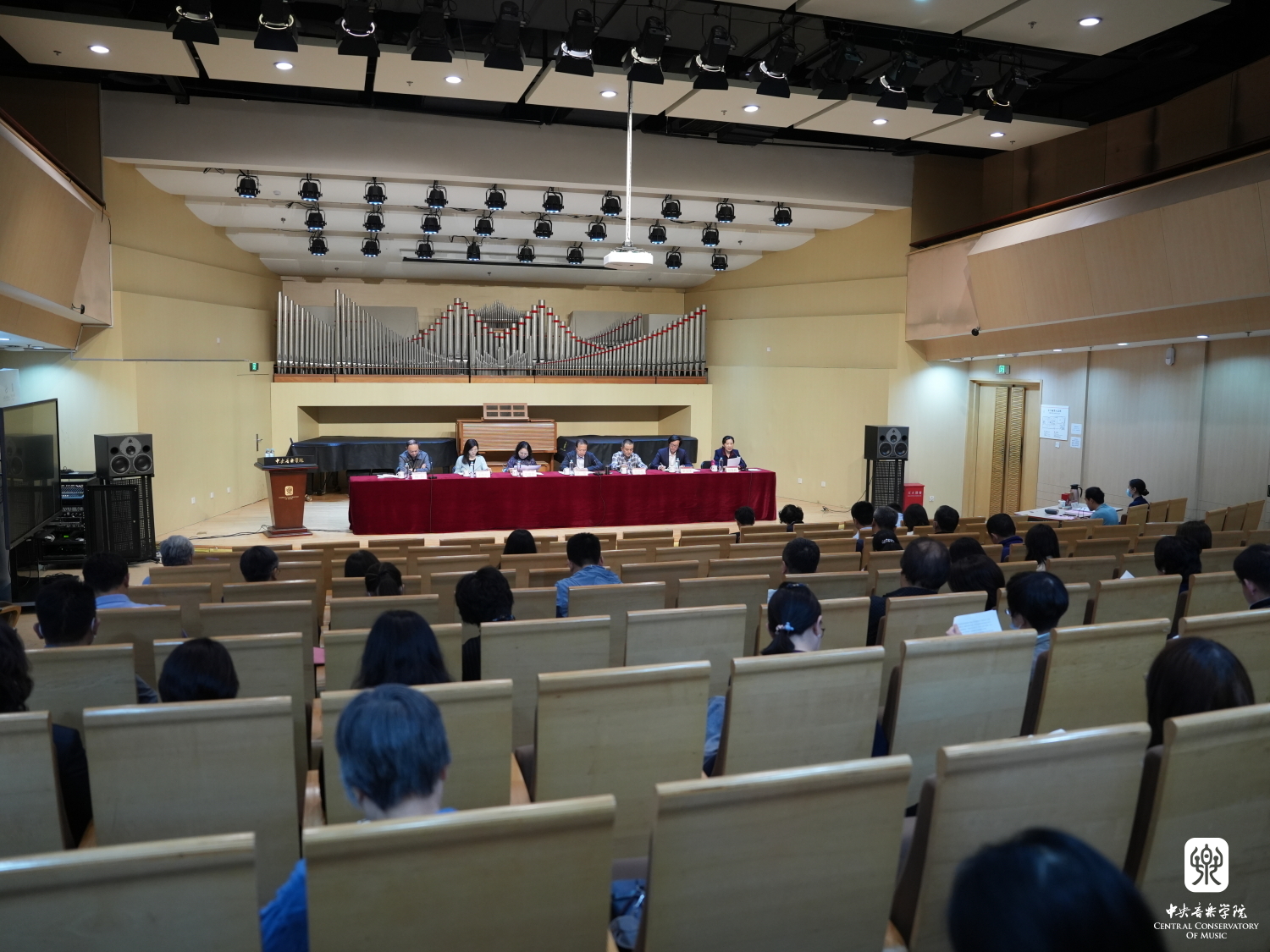 研讨会后,指导组一行在教学楼与琴房楼观摩了KY开元中国青年交响乐团、民族室内乐团排练和指挥系主课教学、音乐学系世界民族音乐选修课等,并参观了KY开元中国乐器陈列馆。