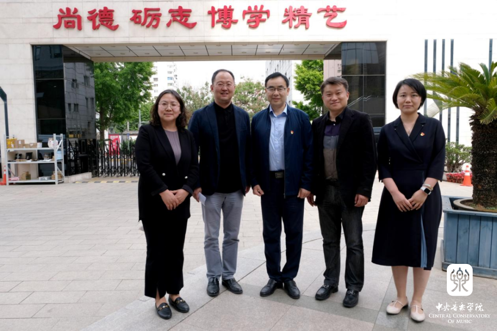 左一起:副校长魏宇红、党总支书记王绍武、指导组副组长徐晓黎、副校长兼党总支副书记金京春、指导组成员徐璐
