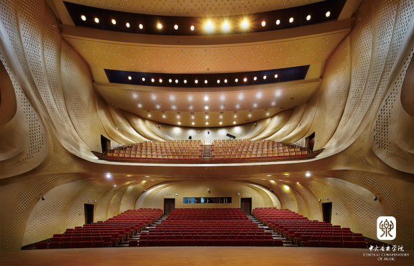 The Opera & Concert Hall features an auditorium and a stage designed with the inspiration of water ripples created by a water drop falling into a tranquil lake, a fan-shaped sloped ceiling of multi facets and carved walls designed like curves, creating an artistic effect of great power and beauty. In the near future, the CCOM Opera & Concert Hall will stand out as another performance venue in Beijing of extremely high functionality and artistic excellence.