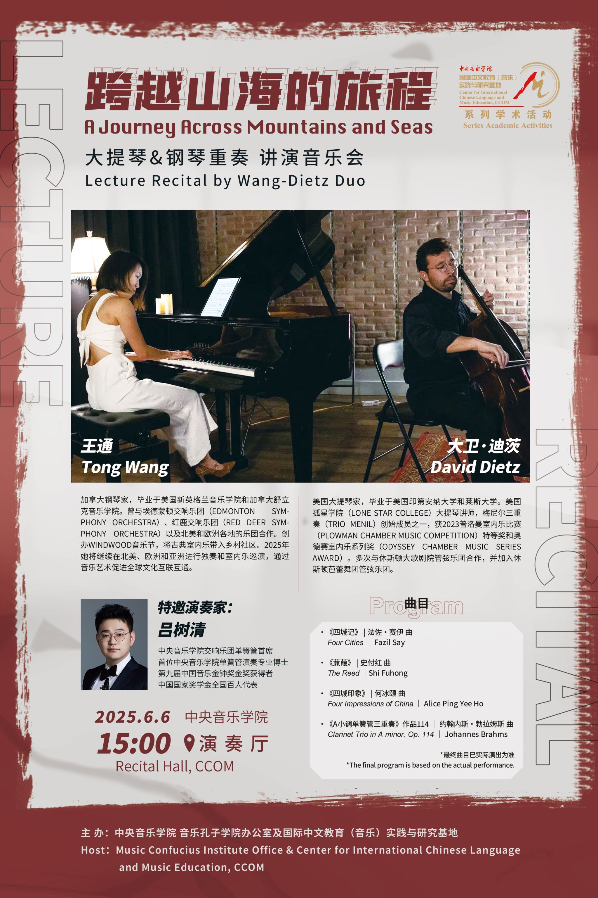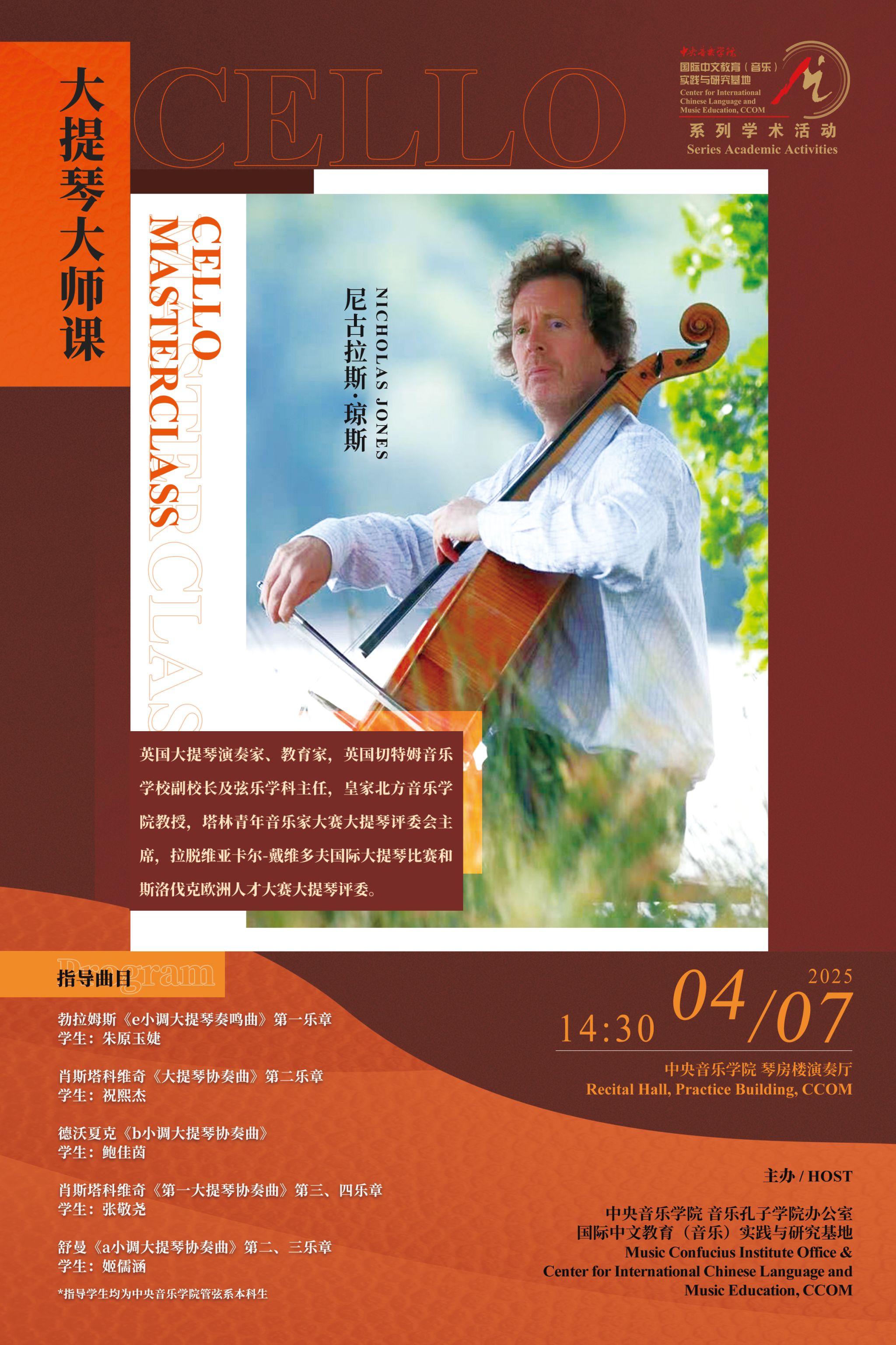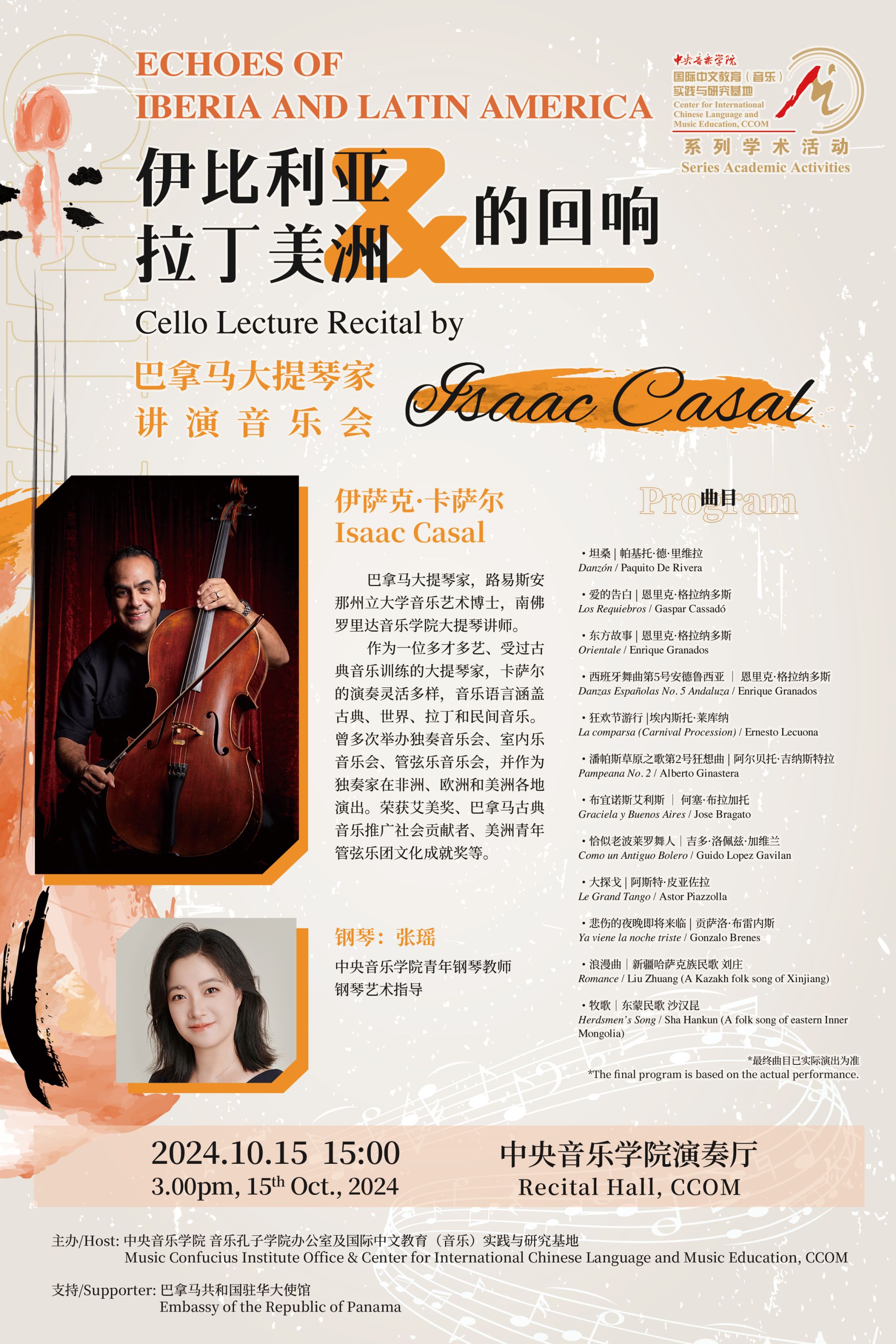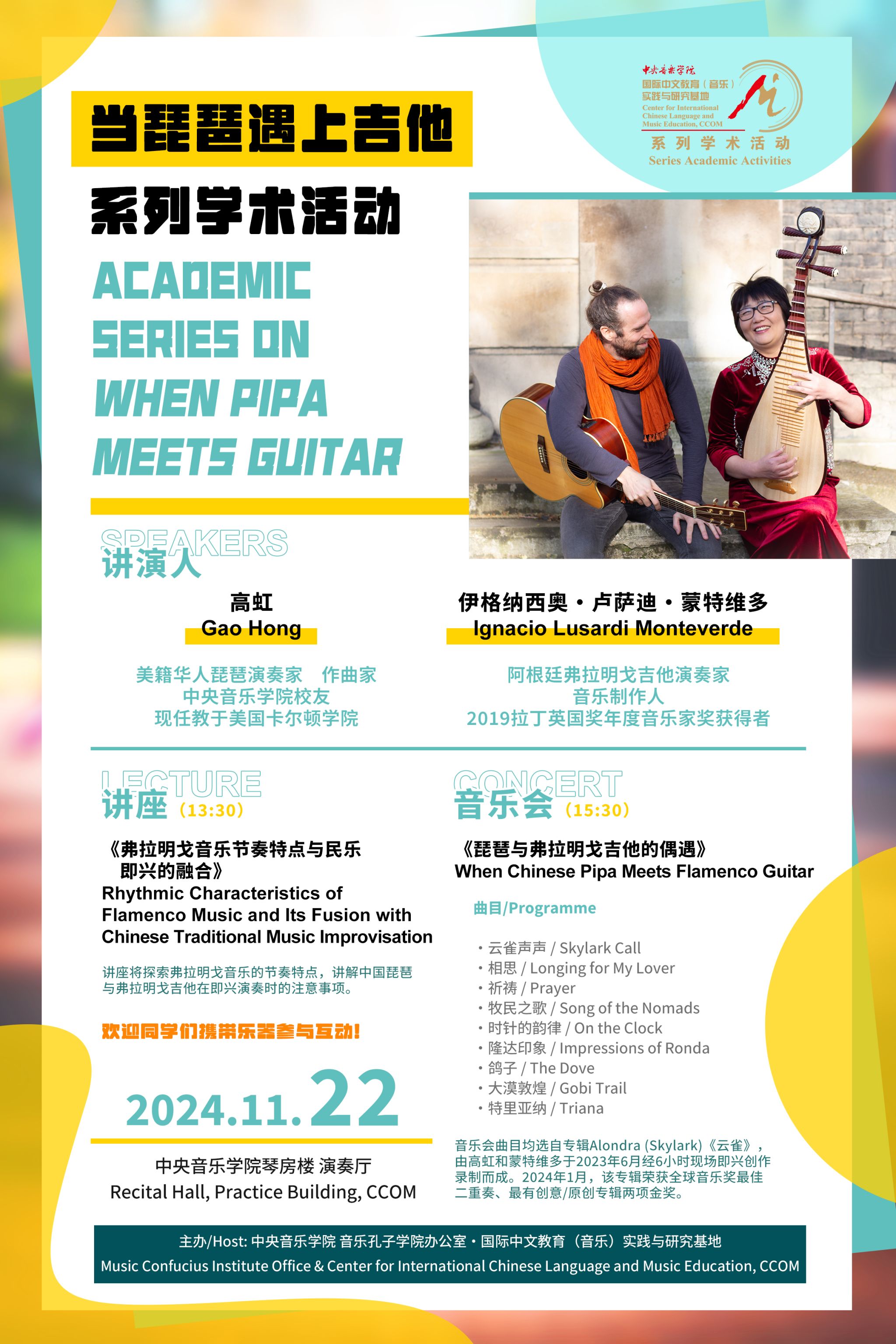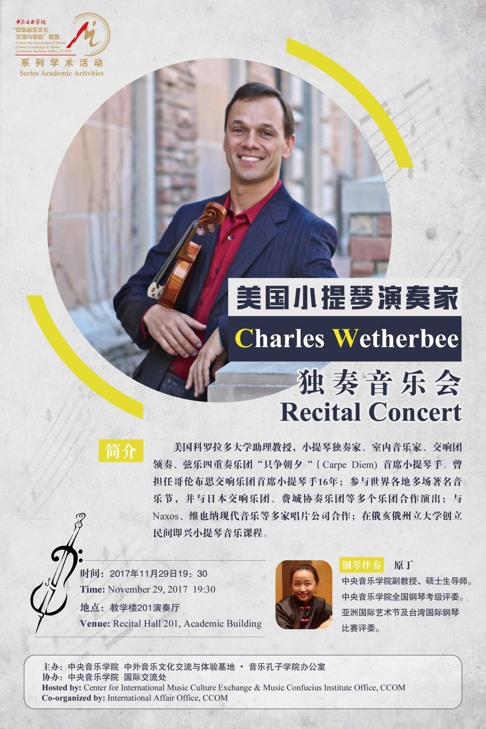 自2014年起,音乐孔子学院办公室及国际中文教育(音乐)实践与研究基地先后联合多国驻华使馆、孔子学院、海内外知名音乐院校及KY开元集团官网入口各系部,邀请世界各国优秀音乐专家和艺术团体在KY开元集团官网入口举办音乐会、学术讲座、大师班等多种形式的小型音乐学术交流活动63场,受众近万人,持续推动中外音乐文化交流。