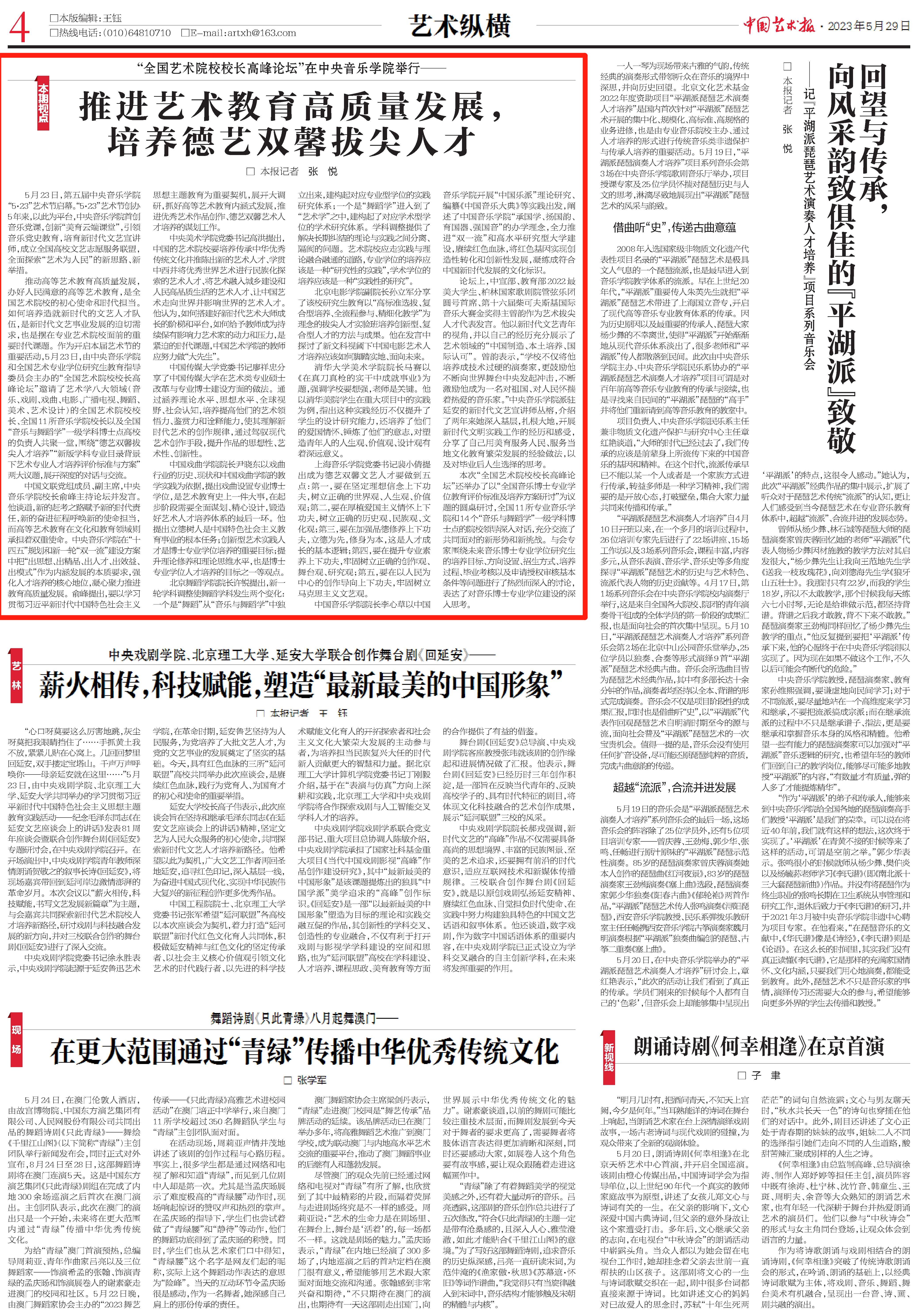 【中国艺术报】推进艺术教育高质量发展,培养德艺双馨拔尖人才