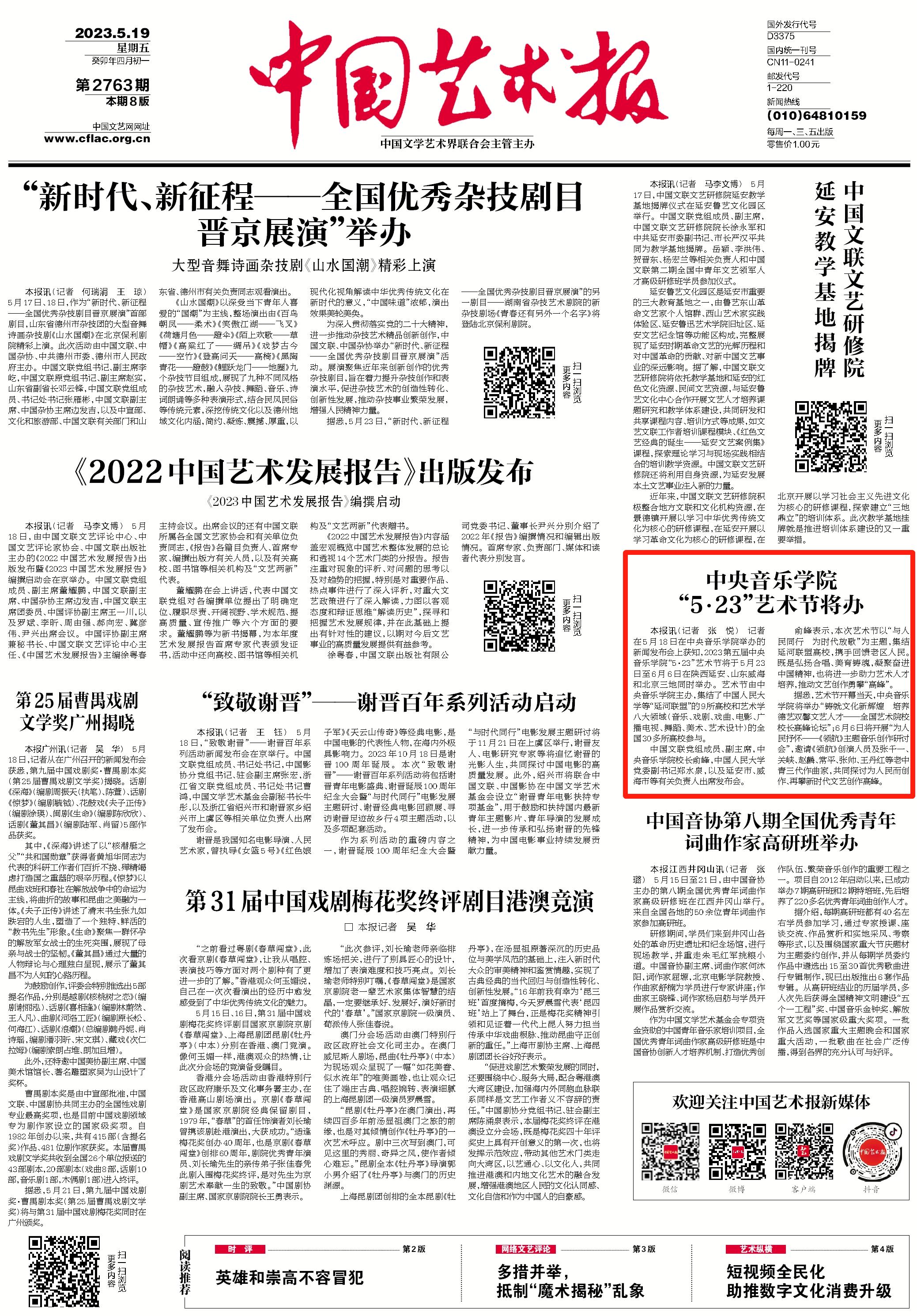 【中国艺术报】KY开元集团官网入口“5.23”艺术节将办
