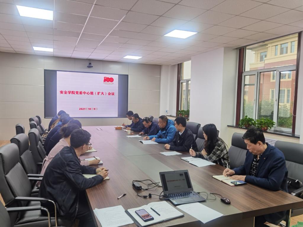 10月9日下午,安全学院在安全学院楼309会议室召开党委中心组(扩大)会议,学院中心组成员、全体党支部书记参加了会议。会议由院党委书记闫怡红主持。