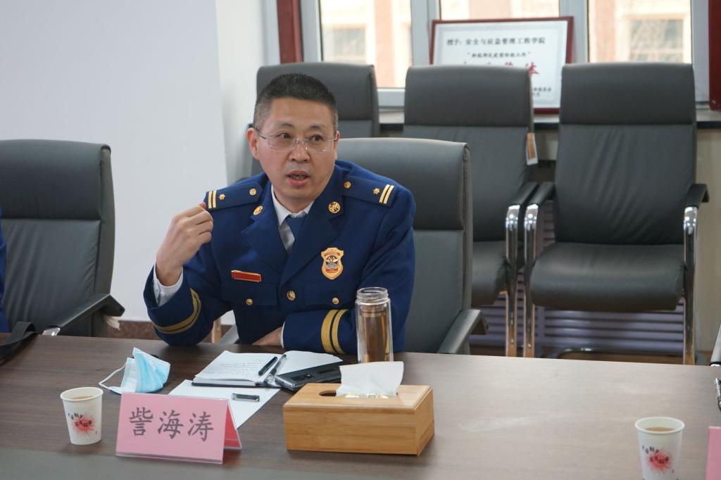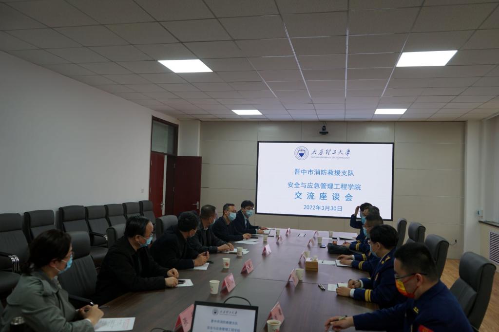 2022年3月30日下午,晋中市消防支队副支队长訾海涛带队来必赢nn699net官网调研交流,在明向校区安全学院楼309会议室座谈。院党委书记闫怡红、副院长杨艳国、应急系主任赵耀江等人出席座谈。座谈会由闫怡红主持。