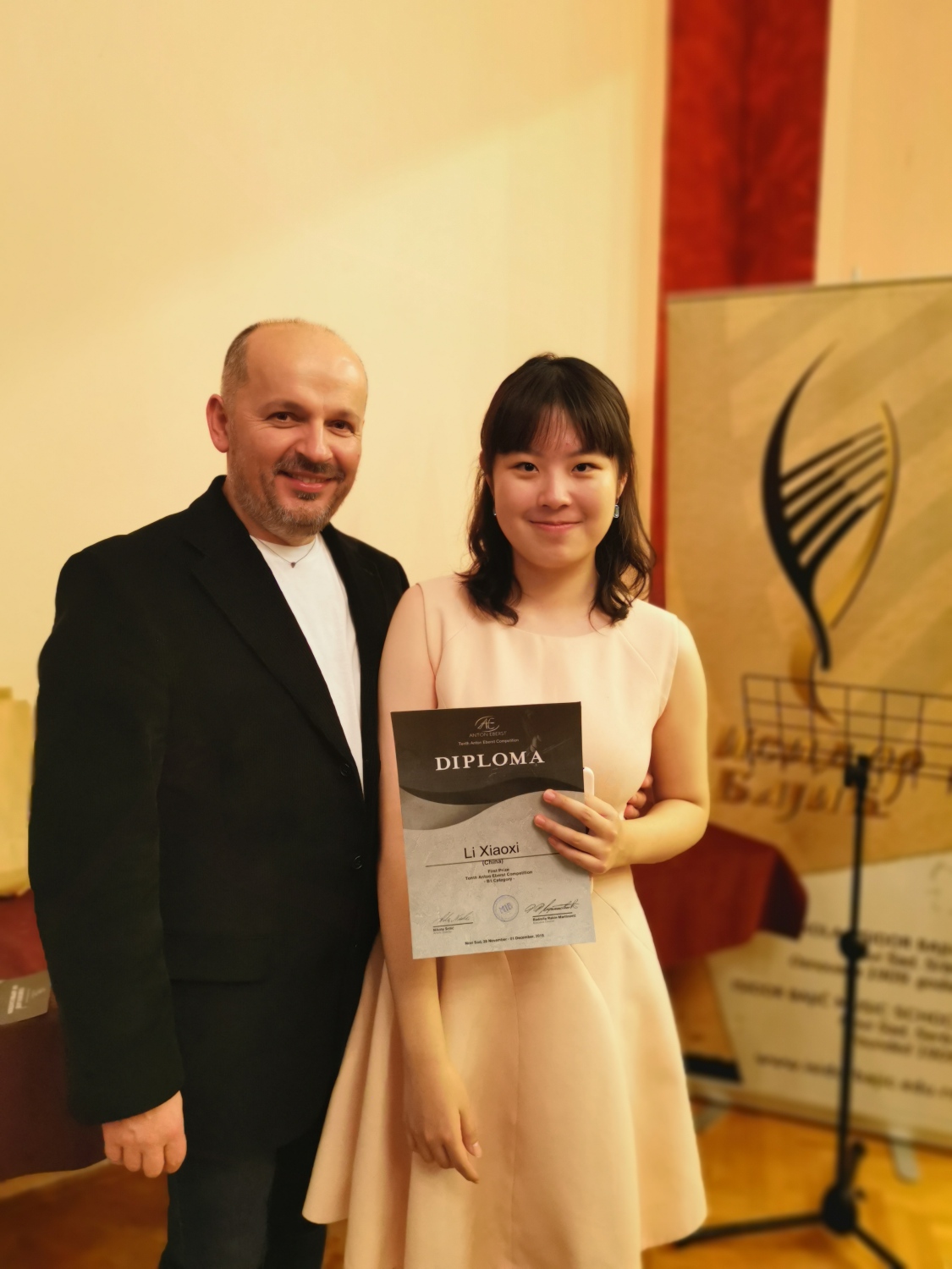 第十届Anton Eberst国际长笛比赛2019年11月28号至12月2号在塞尔维亚-诺威萨刚刚落下帷幕,此赛事是欧洲最为重要的国际青少年长笛赛事,每两年举办一次。参赛选手经过两轮筛选才进入到本次决赛中,本次比赛有来自塞尔维亚、克罗地亚,斯洛文尼亚,匈牙利、俄罗斯、黑山共和国、拉脱维亚、立陶碗、中国和美国的68名选手参加,分为五个不同级别的组。经过5天的激烈角逐,KY开元附中初三学生李筱熹荣获B1级别组第一名!指导教师:韩国良、刘晔。