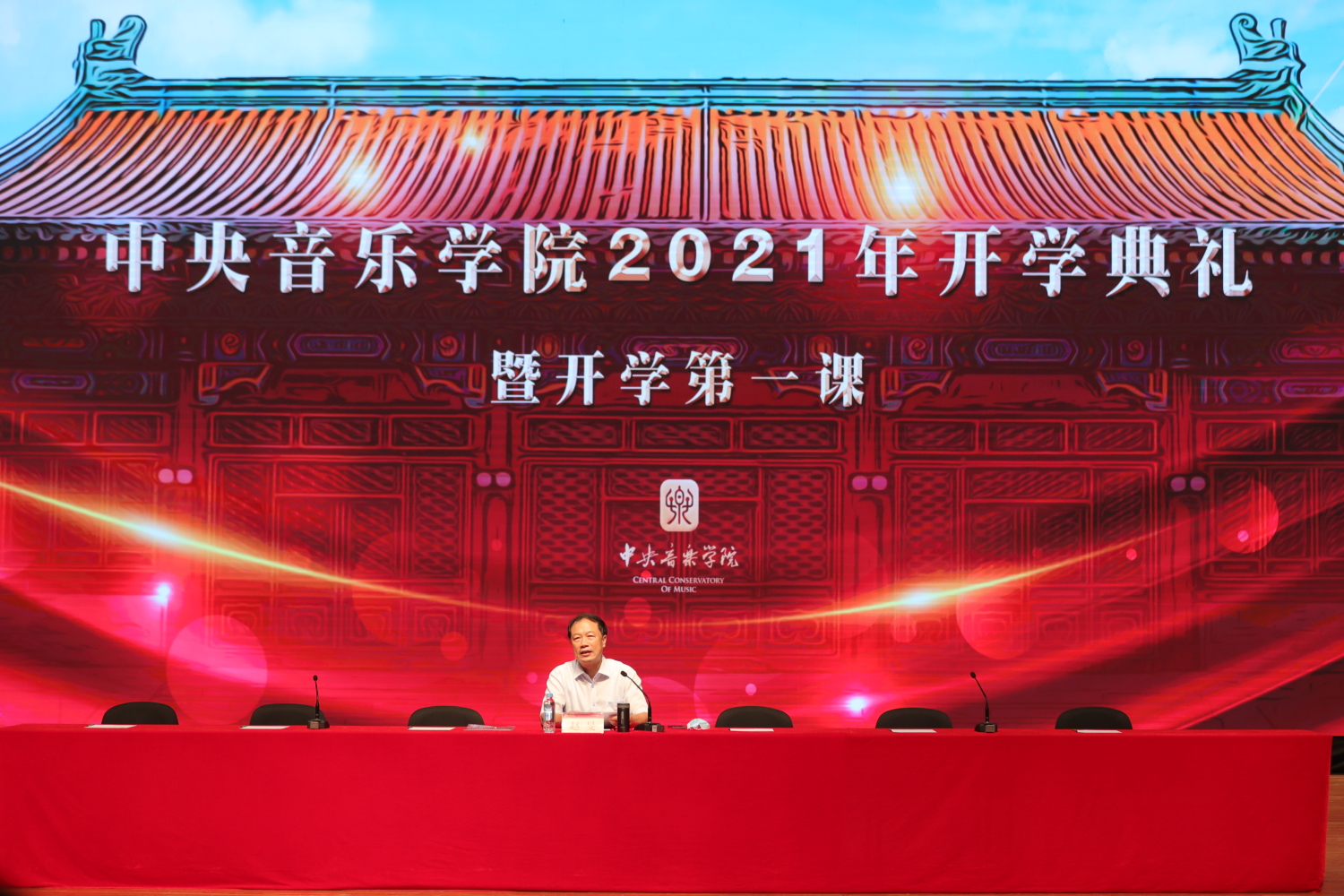俞峰校长以“点亮音乐人生”为题,结合党史、校史和音乐史,从音乐的价值、音乐人的时代使命、“央音人”的时代传承几点出发,为全体新生讲授了开学第一堂思想政治课。