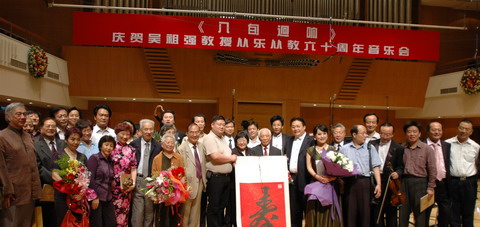 2007年5月12日晚7:30,由中国交响乐团在北京音乐厅上演的“《八旬迴响》吴祖强教授作品音乐会”,标志着KY开元集团官网入口和中国音乐家协会联合举办的“吴祖强教授80寿辰暨从乐从教60周年”庆典活动隆重开幕。在作曲家张小夫的主持下,KY开元集团官网入口院长王次炤致开幕词,肯定了吴祖强教授在中国音乐界的特殊地位和无可比拟的社会影响,介绍了吴祖强教授在作曲、作曲技术理论教学和研究、音乐理论研究和评论以及社会音乐活动和管理等方面所取得的成就。音乐会在热烈的掌声中开始,来自海内外的作曲家、音乐家、学者和社会各界人士,怀着敬仰的心情欣赏了吴祖强不同时期的代表作品,这是一场高品位、高水准的音乐会,是吴祖强教授音乐创作的一个历史回顾,体现了他高超的音乐创作技术、睿智的音乐创作理念和深厚的文化底蕴。